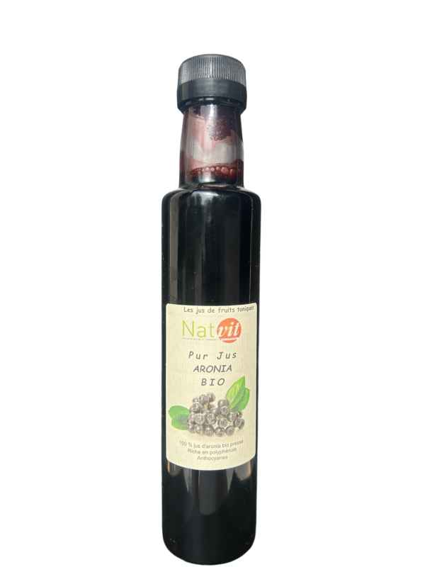DĂ©couvrez le Jus d’Aronia BIO NATVIT, un concentrĂ© naturel d’antioxydants, 100 % pur jus, sans sucre ajoutĂ© ni conservateur. Un vĂ©ritable tonique naturel pour revitaliser votre organisme, renforcer vos dĂ©fenses immunitaires, et retrouver Ă©nergie et vitalitĂ© au quotidien.